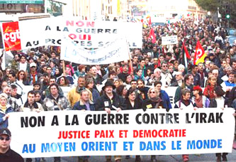 Jordan has declared that it will not allow the use of its air space and territory for launching of a military attack on Iraq. Iraq's key neighbours—Syria, Iran, Saudi Arabia, Jordan and Egypt met to decide to discourage the U.S. from taking unilateral military action. The European Union Commissioner for External Relations expressed the EU's insistence on a specific U.N. mandate for the aggression on Iraq. The isolation of the U.S. was further evident with two of the great powers, France and Germany, declaring their opposition to the U.S led aggression on Iraq. On 22 January, both these countries sent an unequivocal message to the U.S. to this effect. France declared that it was willing to use its veto power in the Security Council on this issue if the U.S. insisted on pushing ahead with its war plans. |