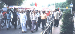 Employees of finance sector unions raise their common demands On August 4, 2003, representatives of employees of various unions in the finance sector held a meeting in Bangalore to highlight their common demands. These included representatives of unions in the Life Insurance Corporation of India, general insurance companies, State bank of India, Reserve Bank, IDBI, NABARD and other banks. The antisocial offensive of the government, its policy of globalisation through liberalisation and privatisation as well as its harsh measures against the rights and livelihood of the working people were vigorously denounced. The participants at the meeting raised the issue of the massive non-performing assets in the banking sector, to the tune of 1,20, 000 crores of rupees. The government was trying to pass this burden on to the working people by adjusting the balance sheets. The government’s attempts to push through the Banks Privatisation Bill in the winter session of parliament and the move towards privatisation of the insurance sector were also denounced. The people’s money should be utilised for the wellbeing of the people and not for the profits of the private monopolies, the finance sector workers declared. The finance sector workers denounced the non-implementation of wage revision which has long been overdue. Retrenchment of workers in the finance sector and forcible VRS were other issues highlighted. Trade union rights of the working people in this sector are also under attack, it was pointed out. The finance sector unions adopted a joint declaration, raising their common demands and decided to launch a powerful campaign against privatisation and forcible VRS in the finance sector, including an All India Convention in December 2003. |