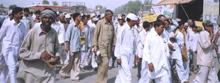 Many prominent personalities of the area, cutting across party lines, had lent their full support to the work of the Lok Raj Sangathan in the days preceding the rally. The welcoming committee for the rally included, apart from the leaders and activists of the Lok Raj Sangathan, Shri Rajendra Kumar Chachan, respected former chairman of the Nagar Palika, Advocate Santlal Tiwari, Dr. Dilawar Singh Beniwal, a popular people’s doctor, Yusuf Ali, retired football coach, Krishnachandra Bhambu (Former Director of the Zilla Parishad), Adaram Saharan (topariya), Advocate Kanwarsein Singhathia, Ex-Subedar Hardutt Singh, Naresh Godara (Sarpanch of Fefhana), Rampratap Chimpa (Sarpanch of Badbirana), Liyakat Ali (Sarpanch of Deeplana), Omprakash Thakan (Sarpanch of Kinkralli), Raghuvir Beniwal (Deputy Sarpanch of Bhukarka), Ramesh Saharan (Deputy Sarpanch of Ujjalwas), Sahabram (President Water Users Association 15 BK), Comrade Mahavir Dhedad (Dhilki village), Dhataram Khot (Soti village), Dhamendra Saharan (Barwali village), Kanaram Saharan (Jasana village), Brijmohan Jhajhadiya (retd. Subedar of Bhukarka village), Noor Mohammed (former Councillor, Nohar), Shakur Ali (former Councillor, Nohar), Rajwant Singh (Dhani Araiyaan), Comrade Farid Khan, Hiralal (retd teacher, Charanwasi village), Ratanlal Arora, Krishan Mahiya, Shishpal Saharan (President of the Sarpanch Union), Sajjankumar (Deeplana village), Rustom Ali, Comrade Mustaq Ali, Sanjeev Kumar (Director, Panchayat Samiti), Sukhdas Swami (Director Panchayat Samiti, Nohar), Maniram Regar (Member, Prashashan and Sthayi Committee), Karnail Singh (Director Zila Parishad Hanumangarh), Jaisaram Mahariya (Director, Panchayat Samiti, Nohar), Rampratap Soni (President, Water Users Association, Ramgarh), Raghuvir Chippa (former Sarpanch), Devendra Beniwal (retired teacher), Hetram from Soti, Shaan Mohammed from Dhani Kalalaan and Om Sudhar (President, Water Users Association).