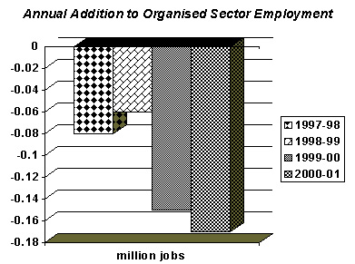 Jobless growth - a manifestation of increasing capitalist exploitation From the beginning of the nineties, when the new economic reforms were launched, the Indian ruling class has been busy spreading the illusion that economic growth will lead to more jobs. Fifteen years of reforms have proved that far from creating more jobs, capitalist growth during these years has given rise to a phenomenon called jobless growth, where the rich have grown fabulously richer, while the working section of the population has been deprived of any new avenues for earning a decent livelihood.