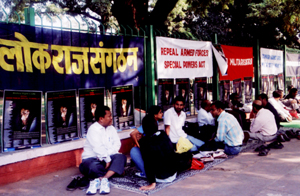 The state is responsible for the brutalities seen in Manipur just like in Kashmir. State terrorism is being used to crush people's movements across the country. The continuation of black laws such as the AFSPA is a crime against the Indian people. All democratic minded people have been demanding an end to such an anti-people law in any form. On the 23rd of November a hunger-strike was organized. Apunba Lup, Manipur Students Association (Delhi), Lok Raj Sangathan, Communist Ghadar Party of India, FDI, Other Media and others took part in this strike.
