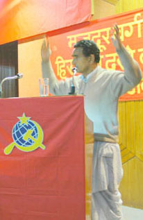 Comrade Enver told our delegation, “Yours is an ancient country and civilization. Your people have a long tradition of fighting against oppression. At various times, revolutionary situations have been created in your country. But the revolution could not succeed due to betrayal by the revisionist leadership. You and your party are young. Your Party is Marxist-Leninist and has a correct line. You must not worry about how many people are around your party today. If the party firmly adheres to the revolutionary line, upholds the bright red banner and persists with the work, then the day will come when millions of workers, peasants and patriotic people will be marching with your party on the road of revolution”. The past 25 years of experience in building our Party in the course of leading the class struggle confirms the correctness of what Comrade Enver told us. When I see all of you today, from all parts of the country, men and women, young, middle aged and old, it fills me with great confidence and pride in what we have accomplished. It fills me with excitement and enthusiasm about what we are going to accomplish in our next 25 years. The times are calling on Indian communists to step up the work of preparing the subjective conditions for the revolution. The challenge is to raise the political consciousness of the working class to reject the path of bourgeois parliamentarism and individual terrorism. The challenge is to organise the working class to wage uncompromising struggle against the bourgeois program of globalisation through privatisation and liberalisation. It is to ensure that the working class unites firmly around its own program for the democratic renewal of India, and inspires the peasantry and all the oppressed to rally around this fighting program. Our Party has decided to take on this challenge. Come comrades – let us pledge to strengthen the steel like unity of the Party around its General Line and Program. Let us pledge to step up our agitational work among the workers, peasants, women and youth, and organise them to wage tit for tat struggle against the bourgeois offensive. Let us pledge to build a broad united front against the bourgeois program, and around the working class program to open the path to revolution. Let us lead the way towards the rule of workers and peasants and a voluntary Indian Union. |