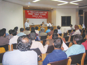 A significant manifestation of this was the meeting on this issue called by Lok Raj Sangathan in New Delhi on March 19, 2006. The meeting hall was filled with a wide variety of people, including media personalities, lawyers, teachers, representatives of mass organisations, human rights activists, youth and students, and other concerned persons. Speakers at the forum expressed their deep outrage at the anti-Iran campaign of the US imperialists, which is clearly a prelude to outright aggression on the lines of Afghanistan and Iraq. The Convenor of Lok Raj Sangathan, Prakash Rao hailed the massive opposition in India to US imperialism, which was visible in the huge demonstrations held across the length and breadth of the country during Bush's visit. He drew attention to the speech delivered by Bush at Purana Qila. Bush had publicly declared that “regime change” in various countries that refuse to accept the American dictate is the agenda of the US imperialists, and called upon the Indian government to collaborate actively with the US in this dastardly agenda which is completely against the interests of the Indian and other peoples. Ever since the fall of the Soviet Union, the US imperialists and its allies are on a drive to make every country without exception follow their system and their scheme of things, and the reason they are so deadly opposed to Iran is because the Iranian people and government refuse to fall in with their plans. He said that the whole world is looking at India in this context, and it is up to the people of this country to show that they are completely opposed to the Manmohan Singh government's “strategic alliance” with US imperialism and that they wholeheartedly support Iran in its struggle to resist US pressure and domination. Among the many others who spoke at the meeting were representatives of the Jamaat e Islami Hind, Jamiat Ulema-e-Hind, Narmada Bachao Andolan, Hind Naujawan Ekta Sabha, as well as lawyers, journalists, students, ex-army men, and cultural activists. The speakers exposed how the accusations against Iran on the nuclear issue were nothing more than systematic fabrications by the US to justify eventual aggression against Iran, which is part of the US imperialist design to extend its hegemony over Asia as a whole. The link between the anti-social offensive of globalization and privatization, and the war plans of the US and other powers, was also brought out. The close ties between the Indian and the Iranian people through history was stressed by several speakers. The participants also expressed revulsion at the stand adopted by the UPA government against Iran. Many condemned the attempt of a section of the media to suggest that the fact that Muslims had turned out in large numbers to oppose Bush's visit was responsible for the communal tensions and terrorist attacks that followed. The overwhelming desire expressed at the meeting was to build up and coordinate efforts to oppose the US war plans against Iran by various means, including mass agitations and putting pressure on the government in the Parliament to withdraw its support to the US campaign against Iran. A resolution was unanimously passed by the house (see below), condemning and demanding an end to the attacks on Iran.