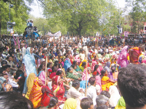 Relentless Struggle of the Narmada Valley oustees The thousands rendered homeless by the Narmada dams, and activists of the Narmada Bachao Andolan have been on a hartal in Jantar Mantar since March 26; they were forcibly moved to this location from Shram Shakti Bhavan in Delhi, where they were sitting since March 21 in support of their demands for rehabilitation of all the oustees of the Narmada Valley on account of the Sardar Sarovar dam. The oustees and activists have demanded guarantees from the Minister of Water Resources and Minister of Social Justice and Empowerment, that a rehabilitation plan will be made and implemented before any further increase in the height of the dam, as announced recently by the Narmada Control Authority. |