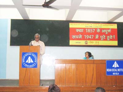 “The transfer of power in 1947 was a betrayal of the aspirations of our people for sovereignty, for political power to shape our own destiny . . .” This was the profound conclusion that found expression in presentation after presentation, by writers, teachers, social activists, lawyers, journalists, women activists, student and youth activists – literally people from all walks of life. They were participating in a discussion on this important question organized by Lok Raj Sangathan on August 12, on the occasion of the 150 th year of the great Ghadar of 1857 and the 60 th anniversary of formal independence.