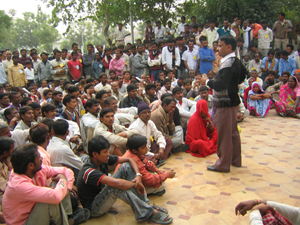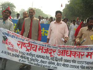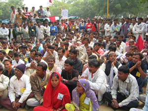 Demonstration of rickshaw pullers at Greater Noida Development Authority