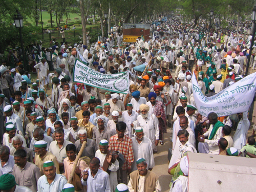 Thousands of peasants marched from the Ram Lila Maidan to Parliament on October 31, 2007 in support of their longstanding demands. They came from at least 16 states of India. The All India Kisan Sabha, Bharatiya Kisan Samaj, Madhya Pradesh Kisan Sangharsh Samiti, Haryana Kisan Sangharsh Samiti as well as other farmers organizations, had mobilized these peasants to come from distant villages of our country to voice their protest. They expressed the concerns of peasants across the country who are reeling under the all-sided attack on their very survival.