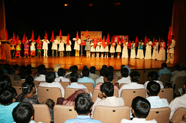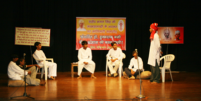 Against the backdrop “Organise, become the rulers and transform society” – the slogan of HNES, and pictures of Shaheed Bhagat Singh, Rajguru and Sukhdev, the programme made a colourful start with the entire cultural group assembling on the stage, carrying red flags and singing in unison “raste pe tumhare chalke hum, azaad ab desh karaengey…ek bar nahin kai sekaron baar, is daar pe hum chadh jayengey..” (Marching on your path, we will liberate our motherland... we will march on this path not once, but a hundred times)