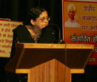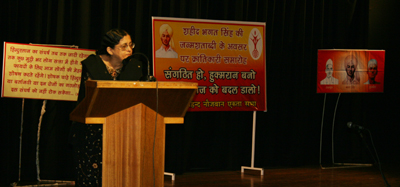 Many eminent speakers addressed the gathering. Prashant Bhushan, defender of people's rights, leading campaigner against the corruption in the judicial system and senior advocate of the Supreme Court said that the present judicial system is a continuation of the British colonial system that sent Bhagat Singh to the gallows. Pankaj Gupta from the Jan Pratinidhi Manch commended the youth for organising such a grand programme. Comrade Gulab Singh enthralled the gathering with his rendering of the Punjabi revolutionary song “Mitti nu salam doston..”. S.S. Azad of Lok Kala Manch (Punjab) dedicated and presented his Hindi book on Bhagat Singh to HNES.