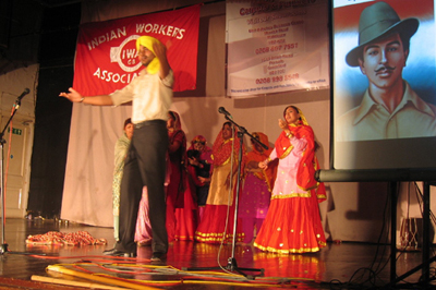 On Sunday, 30th September 2007, Indian Workers Association (Great Britain) organised a memorable public meeting in London's Southall Community Centre to commemorate the birth centenary of Shaheed Bhagat Singh. Comrade Prakash Rao, spokesperson of CGPI was the guest speaker at the meeting. The large audience enthusiastically appreciated the political speeches, messages of solidarity, plays, poetry, patriotic songs, Bhagat Singh Giddhas and Bhangra dances were enthusiastically hailed by the large audience. Nearly three hundred men and women participated in this function. Throughout, the excitement of the audience remained at a high pitch. The hall reverberated with the revolutionary slogan of "Inquilaab Zindabad". The strong wave of emotion and pride felt by the audience in participating in such an important event was palpable.