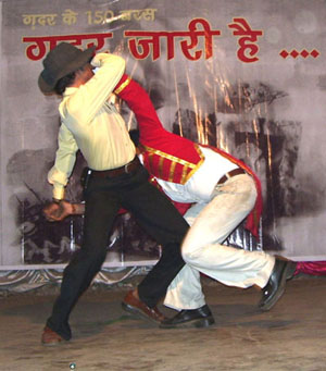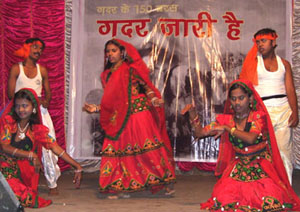 On April 15 th, Lok Raj Sangathan organized a socio-cultural event in Ulhasnagar (Maharashtra), as part of the ongoing “Ghadar Jaari Hai” campaign. Many cultural events like skits, songs and dances were put up by the youth of Ulhasnagar, Thane and Mumbai. The main purpose of the event was to highlight the fact that the “Ghadar” of the martyrs of 1857 is still continuing, to talk about the problems faced by people today and to point out the way forward. The representative of the Ulhasnagar Committee of the Lok Raj Sangathan welcomed the people and talked about the campaign and its contemporary relevance.