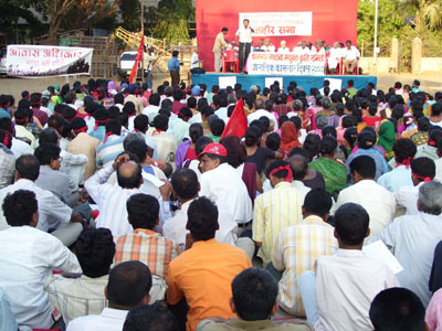 He said these thoroughly anti worker moves were being initiated by the ruling Congress Government in Maharashtra. He explained that the Congress government, which came to power in the Centre on the slogan of the “aam aadmi” in 2004, stood now thoroughly exposed as a Party representing not the “aam aadmi” but the big capitalists of India. The events of the last two decades had shown that no matter whether it was the Congress led government or BJP led government at the center, and no matter which Party or coalition ruled in the States, it was strictly defending the interest of the big capitalists. He said either the big capitalists of India will rule or the workers and peasants of India. There cannot be a third way whereby the big capitalists as well as the workers and peasants of India will both progress. Therefore, he concluded, that it was necessary for the working class and toilers to build their united front of working people and challenge the rule of the big capitalists.
