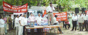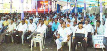 Com Matpathi, General Secretary of BSNL Employees Union announced that 30,000 BSNL Employees in Maharashtra were on strike and attacked the government’s moves to privatize BSNL. Dada Samant of the Kamgar Aghadi said we should vigorously oppose the changes in labour laws and use the coming election also for this purpose. The Central Government was collecting Rs 100,000 crores as Service Tax from the 30 crores of unorganized workers in India but this was not being put back to their benefit.