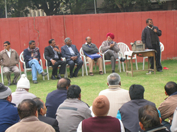 The Joint Action Committee in support of the UNI Employees struggle organised a gate meeting on January 22, 2008 to celebrate the defeat of the hostile take over bid of their company by Subhash Chandra. CGPI leader Comrade Bijju Nayak, CPI leader Comrade D Raja, and veteran journalist Anil Chamadia were amongst those who felicitated the UNI workers on this hard won victory.