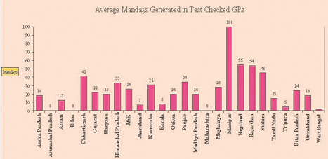 The CAG Audit conducted a review of the employment provided (as per the Monthly Progress Reports of March 2007) in 465 GPs in 111 blocks in 26 States, which revealed that:
