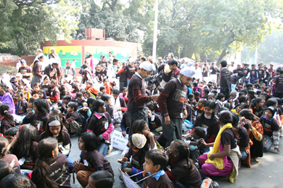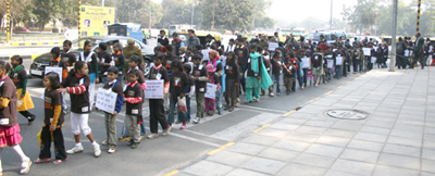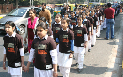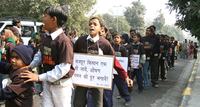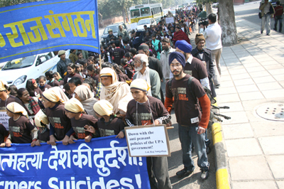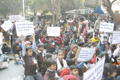 On January 31, 2008, hundreds of children marched from Mandi House to Jantar Mantar under the banner of Lok Raj Sangathan to protest against peasants' suicides that have plagued the country due to indebtedness.