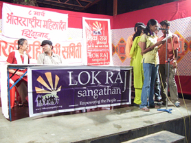 Activists of Lok Raj Sangathan presented the history of the International Women’s Day, the role of women in struggles with the other oppressed section of the society in raising and winning demands like eight hours work, universal suffrage, equal wages etc. world over. The women in India have been in the forefront of struggles against every form of social injustice, for the right to work, education, health services, equal wages etc.