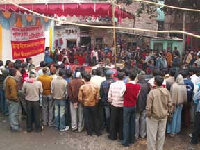 The public meeting was inaugurated with a progressive song "dekho rang badal raha hai asmaan ka", rendered by two young girls from Sanjay Colony.