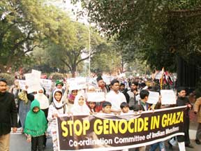 A demonstration was organised on 6th January 2009 in front of the Parliament house to protest against the barbaric attack by Israel on Palestine. The demonstration was organised under the leadership of Co-ordination Committee of Indian Muslims.