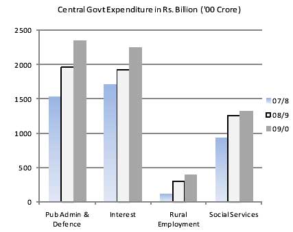 Stimulating demand for various goods that the capitalists want to sell is the aim of various measures announced in the budget. With this aim, total expenditure of the central government was increased sharply through 3 packages of 'fiscal stimulus' in 2008/09 to reach Rs. 9 lakh crore, from 7 lakh crore in 2007/08. Total government spending is now being targeted to rise to over Rs. 10 lakh crore in 2009/10.