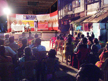 At the initiative of the Lok Raj Sangathan and activists in the community, Resident Doctors from the KEM Hospital conducted a medical camp for the community. In the evening, Purogami Manhila Sangathan and the Lok Raj Sangathan organised a significant public meeting in which activists as well as masses of working women and men enthusiastically participated.