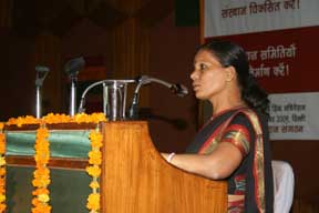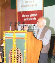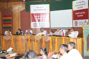 The 5th All-India Convention of the Lok Raj Sangathan (LRS) commenced with the lighting of lamps by five young women in a hall beautifully decorated with banners and filled to capacity. The membership of LRS had travelled from far and near, from Manipur and Tamil Nadu, Maharashtra, Himachal, Karnataka and Andhra Pradesh, UP and Rajasthan, Jharkhand and Bengal, Punjab and Haryana, as well as from the U.S. and Canada. The Convention is the most important meeting of the Lok Raj Sangathan, the meeting of its general membership, where the work done in the two years since the last Convention is assessed, the thrust of the work in the coming two years is decided and the All-India Council and office bearers are elected.