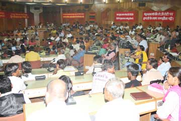 The two days witnessed overwhelming and enthusiastic participation from the members in response to the Report of the Secretary and the President's address. With almost one voice, speakers expressed their support for the work of LRS, their own experience in the struggle and the commitment to take the work further ahead through the strengthening of the Sangathan and its local Samitis. The participants listened to the interventions of members from different parts of the country with rapt attention. They enthusiastically encouraged young boys and girls, some of whom were speaking in public for the first time.