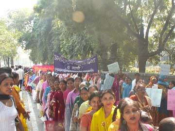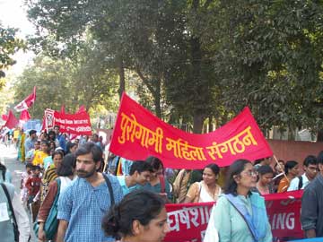 It is significant that this demonstration and rally was being held at around the same time that the UPA government was trying to introduce the Women’s Reservation Bill in the Rajya Sabha. This Bill, which seeks to give 33% reservation for women in all legislative bodies while leaving intact the existing political system and process, is being touted as the government’s “gift” to women on the centenary of International Women’s Day. The militant rally was in sharp contrast to the activities of the CPI(M) and its allies, who were busy mobilizing women in support of the UPA government and the Reservation Bill, spreading the illusion that somehow this is a measure that would contribute to the empowerment of women.